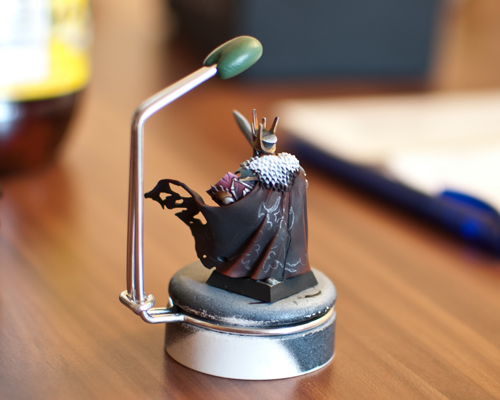 Again: MOAR highlights, even MOAR bleached bone ;) I also shaded the lines in the cloaks recesses with a mixture of snakebite leather and dark flesh. Not too dark, just to define the lines more.